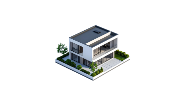 3D rendering of modern white house icon with windows and doors, representing safe home architecture design isolated on white background.