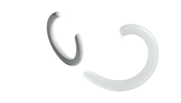Two semi-circular, glossy, three-dimensional forms float on a black background, slightly offset