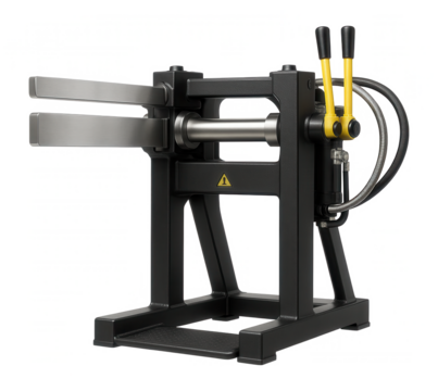 Hydraulic-powered duct bending machine with a reinforced steel frame for heavy-duty operations in industrial HVAC manufacturing.