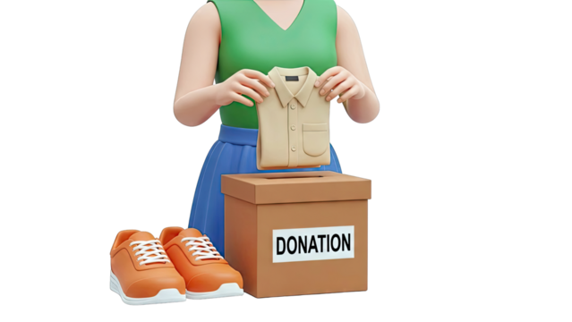 Hands passing a donation box with the word donations on it isolated on transparent background