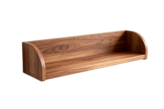 Wooden shelf with curved edges for wall mounting