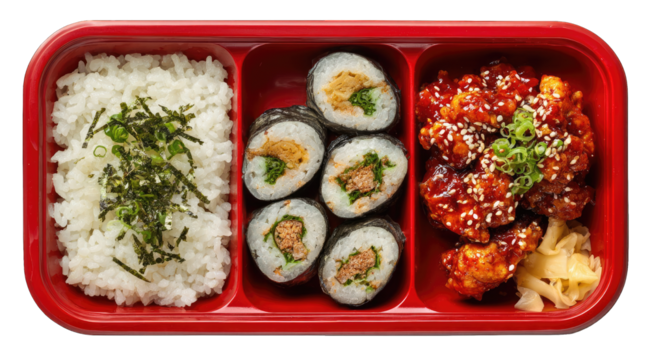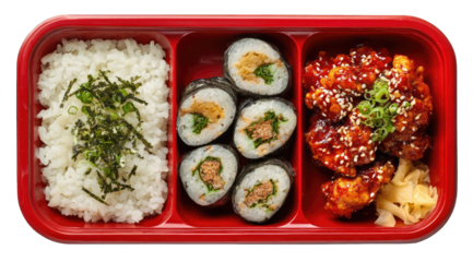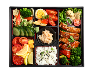 Healthy Bento Box with Salmon and Vegetables Isolated on Transparent Background