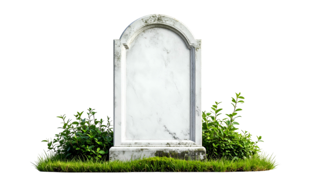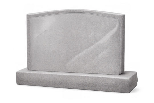 Blank granite tombstone with empty space for text, grave marker on transparent background, funeral stone