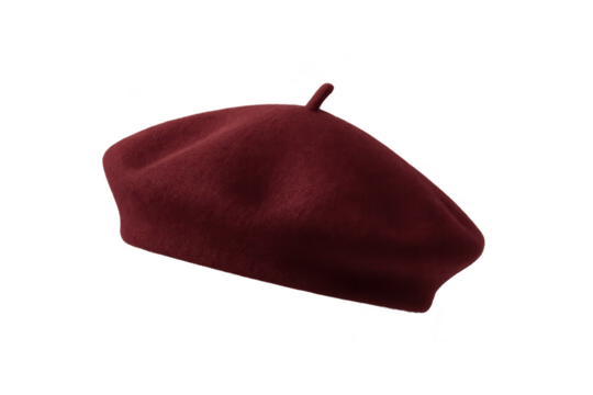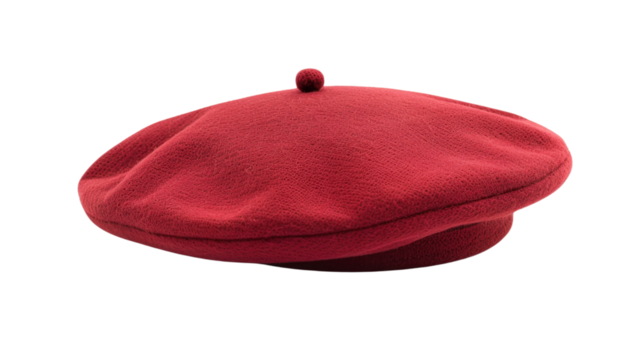 Vibrant red beret hat isolated on gray background, a stylish headwear choice transparent background