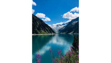 A large iceberg with blue and white coloration floating on the water against  transparent background view png