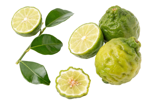 Fresh halves of green bergamot fruits on a transparent background Includes clipping path and copy space