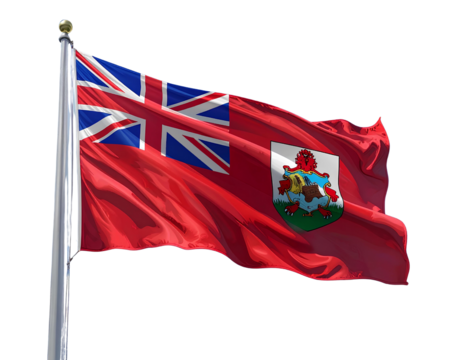 Flag of bermuda with no background, transparent png, flag on a flag pole waving in the wind, national symbol of bermuda island, country in north america, picture of a flag