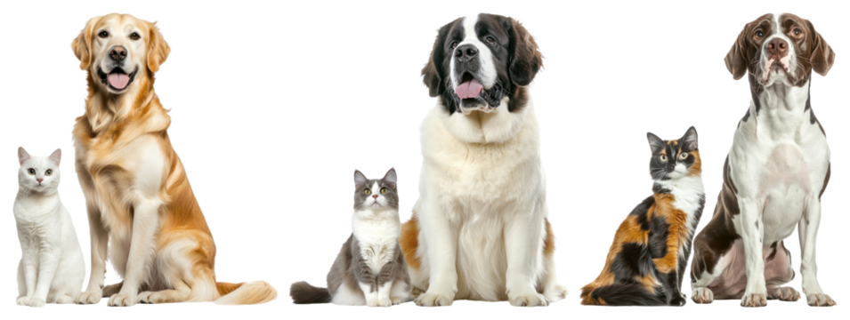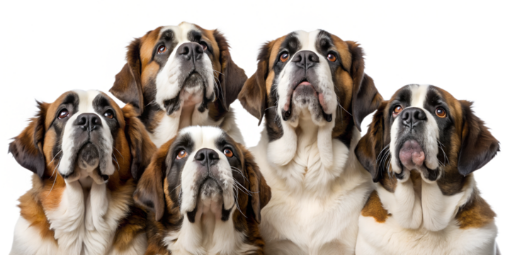 group of Saint Bernard looking up, isolated, transparent background, AI generated
