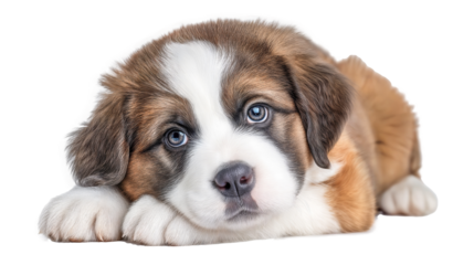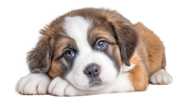Saint Bernard dogs looking at the camera isolated on transparent background