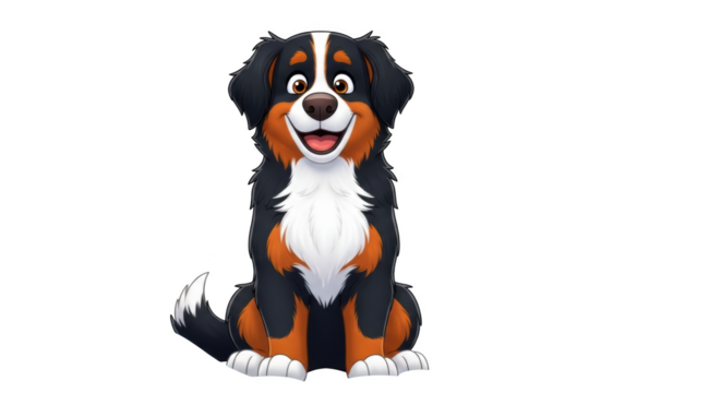 A beautiful Bernese Mountain Dog stands attentively isolated on transparent png
