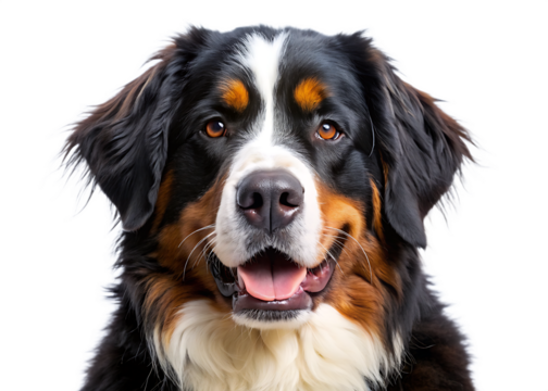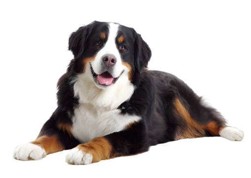 Adorable Bernese Mountain Dog PNG transparent isolated image highlighting its playful character and stunning coat.