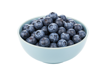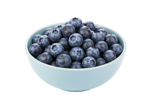 Blueberry in a white bowl collection, side and top view, isolated on a transparent background