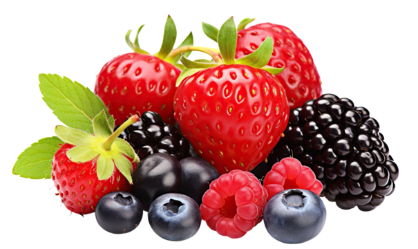 Transparent PNG Image of fresh mixed berries (strawberries, blueberries, and raspberries)