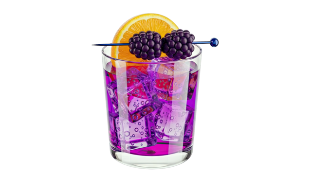 Purple Cocktail with Blackberries and Orange Slice