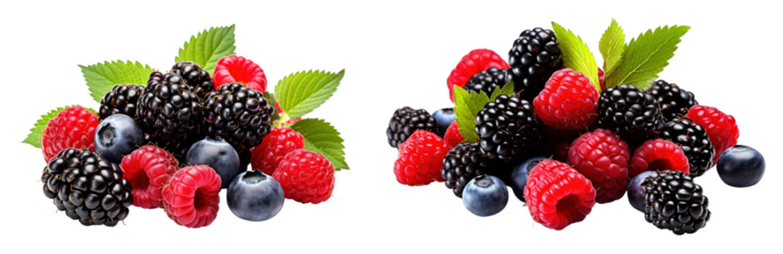 wild Berries mix, raspberry, blueberry, blackberry, isolated on white background,