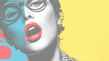 メガネをかけた女性の顔を描いたモダンなポップアート