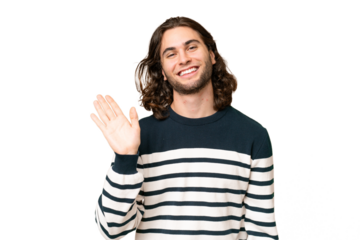 Hands, palms gesturing up, saying hi, greeting, hello, bye isolated on white