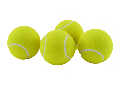 Three tennis balls, yellow, fuzzy, isolated on transparent background. background removed