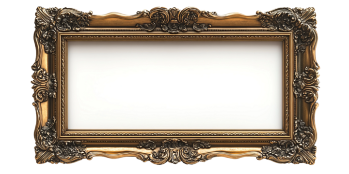 Transparent vintage elegant ornate frame with scalloped edges and floral scrollwork