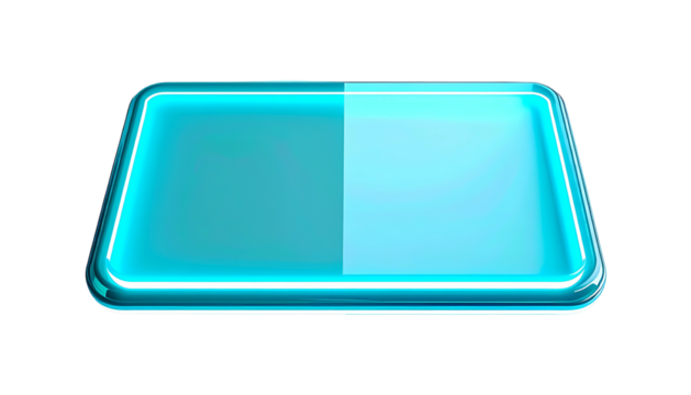 A luminous, rectangular shape with rounded corners. The central area is bright white with a slightly glossy appearance. A vibrant, glowing blue border frames it