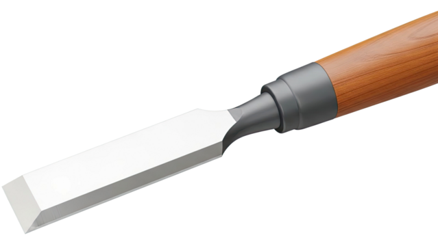 Close-up of a Sharp Woodworking Chisel with Wooden Handle