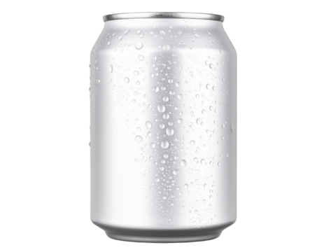White Beverage Can with Cold Water Droplets, isolated on transparent background