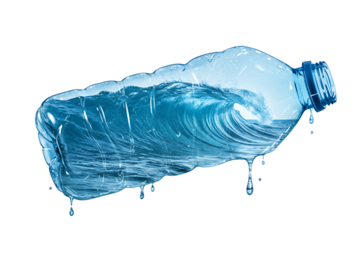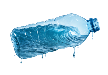 Plastic water bottle with swirling water splashes and droplets
