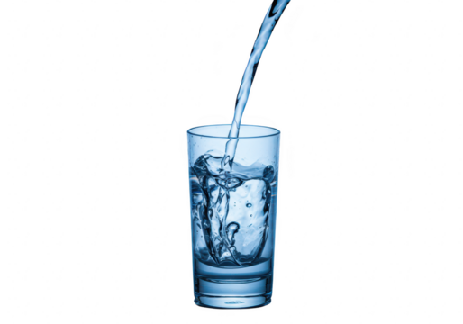 Tilted tumbler with blue beverage and pink stirrer on transparent background