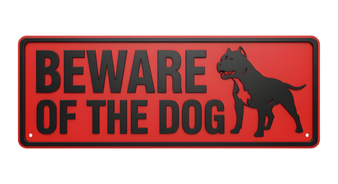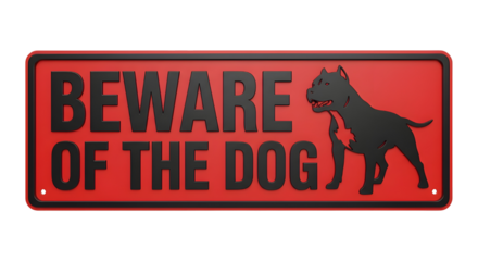"Beware of the Dog" Warning Sign with Aggressive Pitbull Silhouette on Red Background, Isolated on Transparent Background