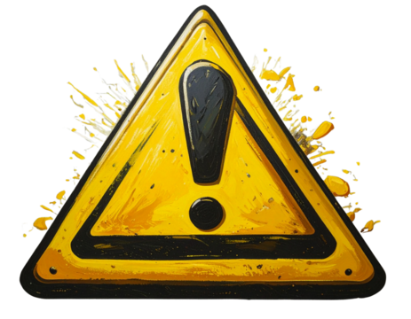 A 3D rendered yellow warning sign with a black exclamation point against black background