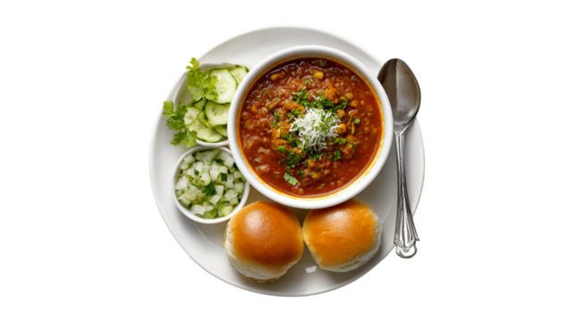 Delicious pav bhaji isolated on white background, PNG