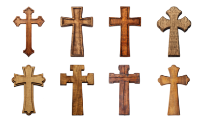 A golden, ornate cross with rough texture is displayed against a pure transparent background. Simple, yet elegant