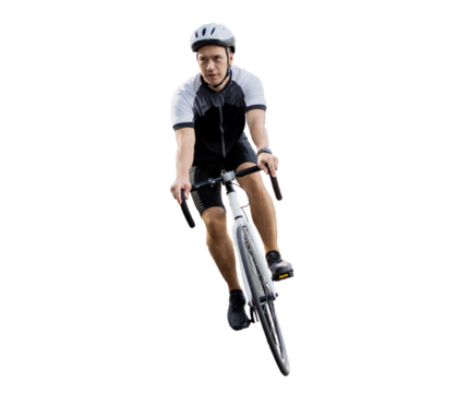 Caucasian male cyclist wearing helmet looking confident transparent background