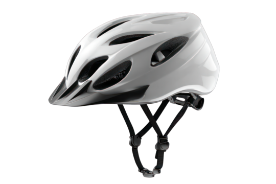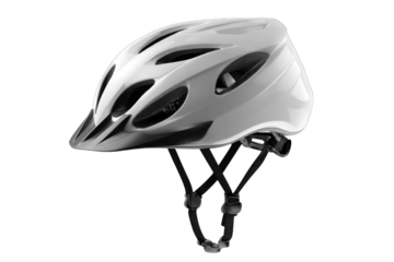 Sleek white fixed-gear bicycle with matte black wheels and matching helmet in a high-key studio, perfectly lit against a seamless transparent background, elegant product photography concept