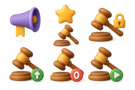 Auction icons with gavel megaphone star and lock for user interfaces and graphic design