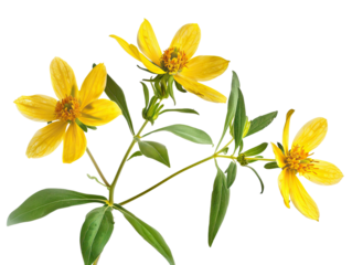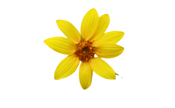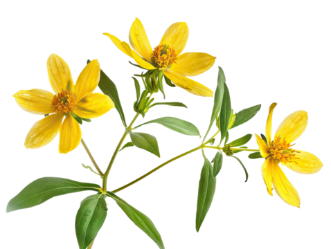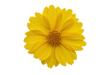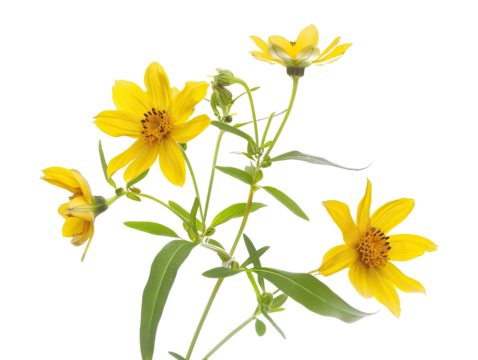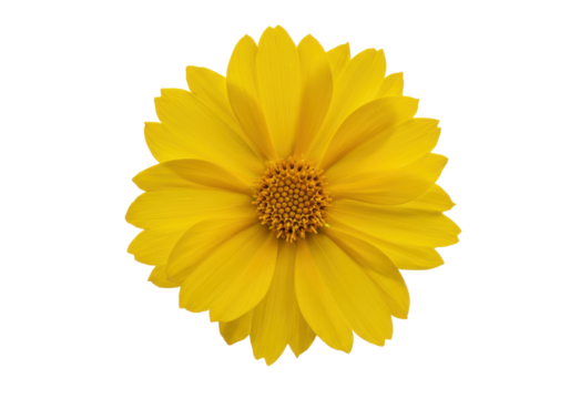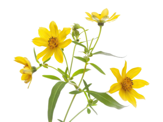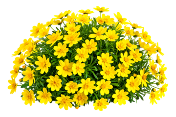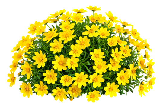 Cluster of bright yellow bidens flowers isolated on transparent background