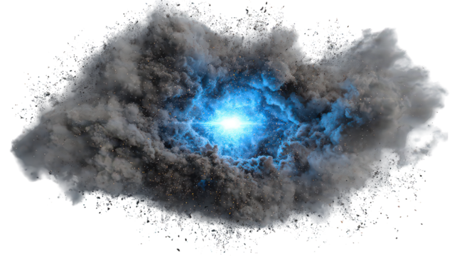 Blue And Gray Cosmic Nebula With Sparkling Stars On Transparent Background