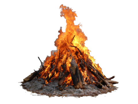 Crackling bonfire image isolated on white great for outdoor party flyers or campfire storytelling visuals