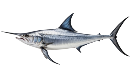 A whole swordfish with a very long, sharp bill isolated on white background. Suitable for marketing or business purposes. PNG file