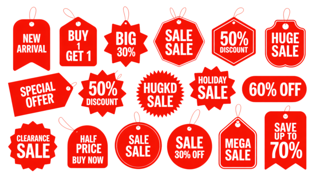 Exciting red sale tags collection offering discounts and special deals