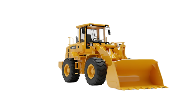 Yellow Front-End Wheel Loader Construction Vehicle with Transparent Background