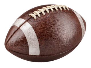 A Leather American Football Ready for the Big Game on a Clear PNG or White Background.