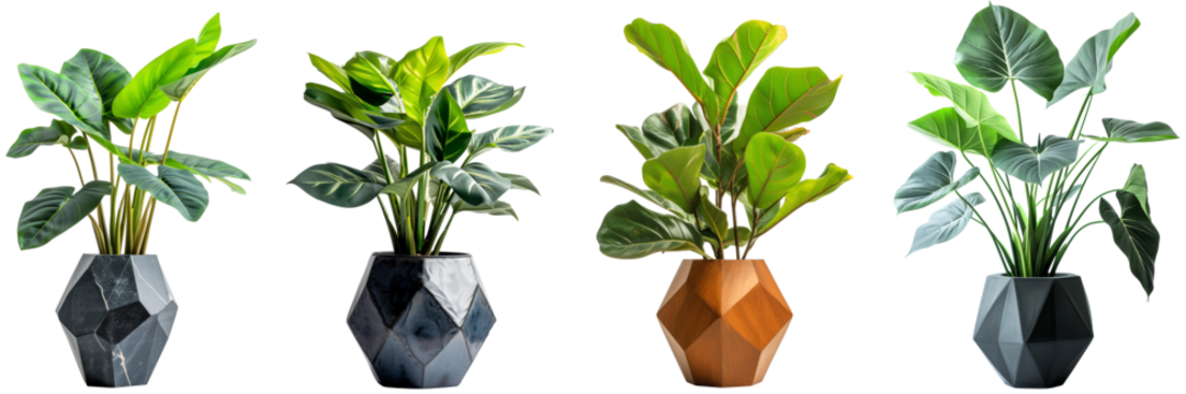 Beautiful large house plants in a modern geometric vase or pot isolated on a transparent background