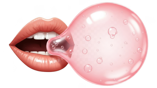 Lips blowing a pink bubble gum