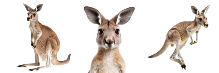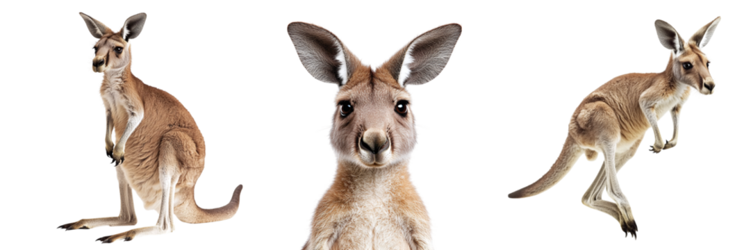 Set of cute kangaroos isolated on transparent background PNG