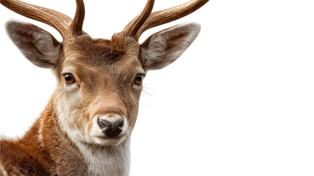 A cute, spotted baby deer fawn standing on its legs, looking forward with big eyes, isolated on a transparent background