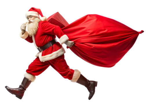 Santa Claus Running with Large Red Gift Sack on Transparent Background motion action isolated on a transparent background