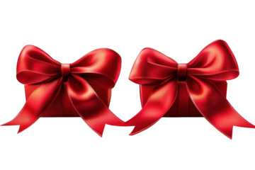 A festive, shiny red satin ribbon bow isolated on a white background, perfect for a Christmas gift wrap, birthday present, or holiday celebration package design