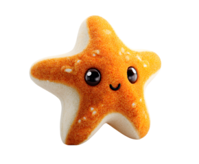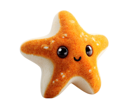 Cute orange starfish character with a big smile and open mouth, depicting happiness and childlike joy, transparent background