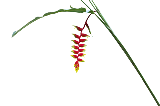 Tropical Red Heliconia Flower with Leaf Isolated, cut out transparent